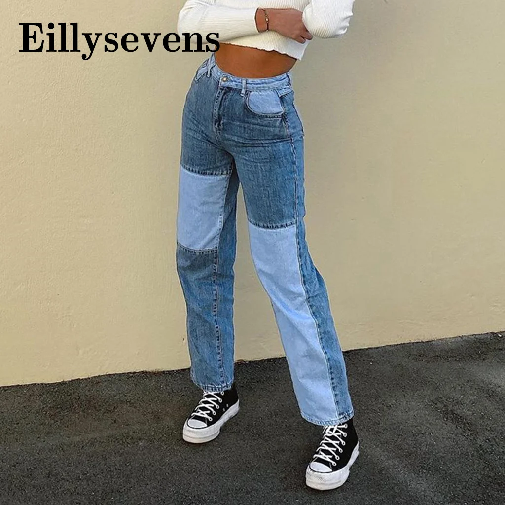 Name: Pantalones vaqueros holgados y cómodos de cintura alta para mujer, Pantalones rectos informales de talla grande a la moda, Vaqueros Mom lavados de retales # t 2020